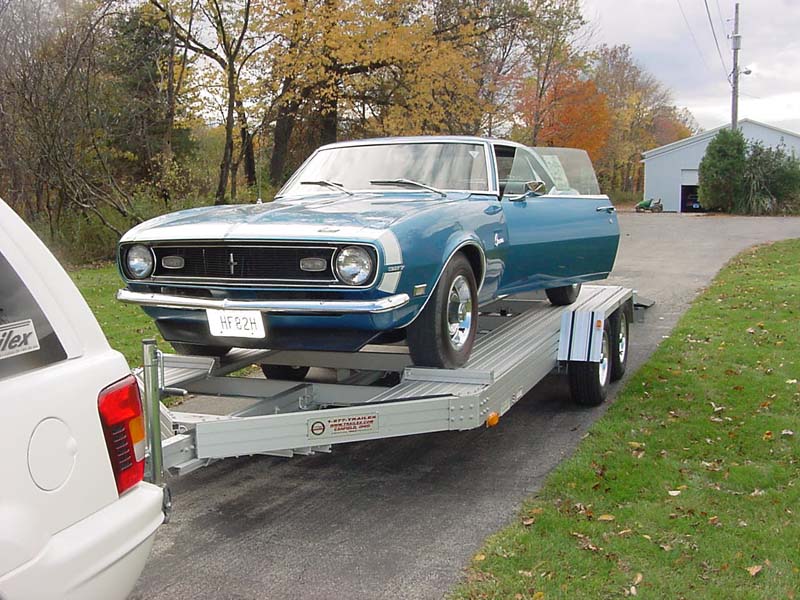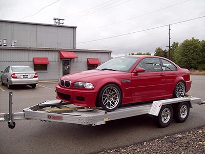 This trailer has long been known as the original “911” trailer. It is very lightweight (as always all bolted together) and has a usable deck width of 75″, overall width of 99 3/4″ and overall length of 18′ 9″. The 7551 may fit in your garage. Trailer is standard with open center that can be used as a (free lift), full aluminum floor optional. Anodized maintenance free, doors open over fender, options can be shipped and bolted on, strong resale value, 3 year warranty, 2 front adjustable wheel stops, LED lights. As always make sure your car will fit on this trailer! 2″ ball coupler, Bed length 12′ 9″, Fender height 6 1/4″, center opening 42″, weight capacity 5100 pounds. (Total weight 1205 pounds) This trailer has long been known as the original “911” trailer. It is very lightweight (as always all bolted together) and has a usable deck width of 75″, overall width of 99 3/4″ and overall length of 18′ 9″. The 7551 may fit in your garage. Trailer is standard with open center that can be used as a (free lift), full aluminum floor optional. Anodized maintenance free, doors open over fender, options can be shipped and bolted on, strong resale value, 3 year warranty, 2 front adjustable wheel stops, LED lights. As always make sure your car will fit on this trailer! 2″ ball coupler, Bed length 12′ 9″, Fender height 6 1/4″, center opening 42″, weight capacity 5100 pounds.
